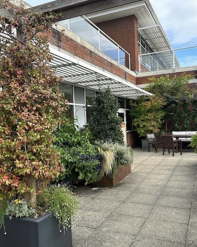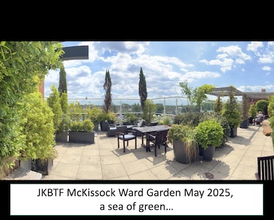 ‘In May/June I spent 7 days in McKissock Ward following the removal of a large bifrontal olfactory groove meningioma. The surgeons stressed the need to be upright and moving asap and the roof gardens were an ideal place for me to walk slowly around when I was able to. I would also sit outside and enjoy the fresh air, plants, tranquillity, and space away from the busy ward. It was a space to think and contemplate, so important after such life-saving surgery, I’m certain it helped my recovery. I loved it there and am grateful to all those involved in providing it.’